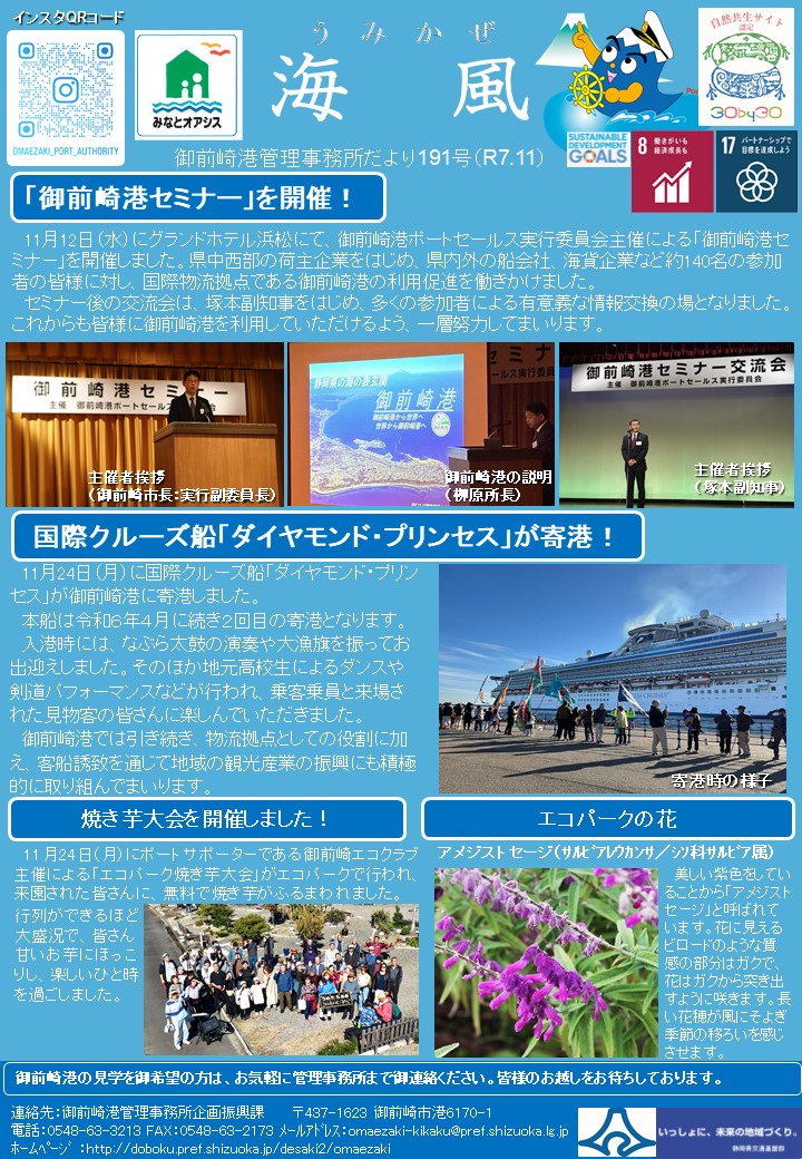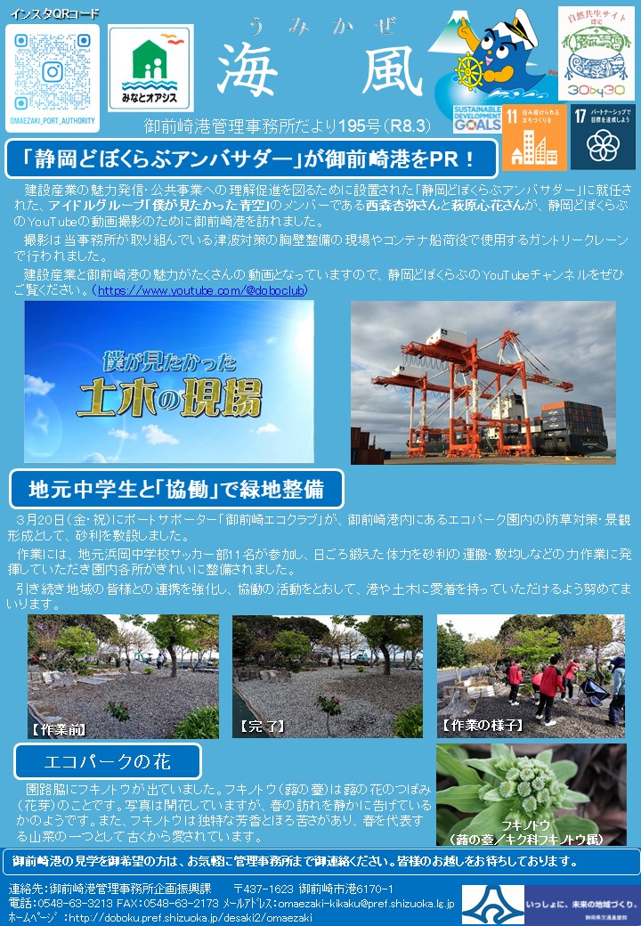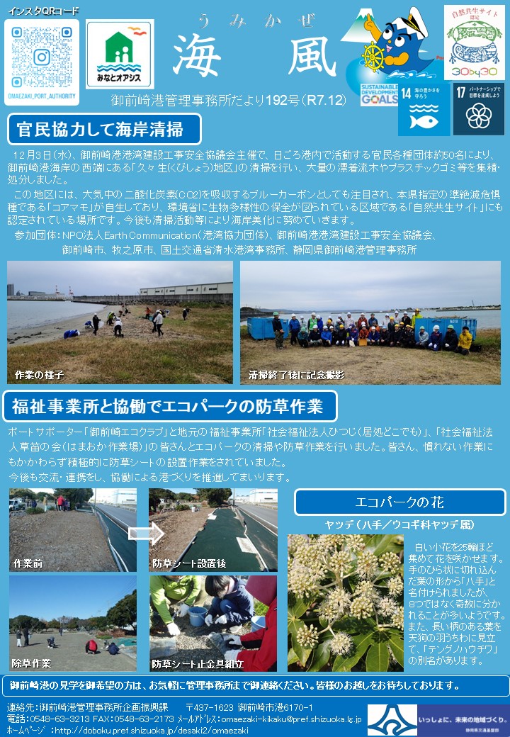 御前崎港管理事務所の広報誌です。 クリックするとPDFファイルでご覧いただけます。